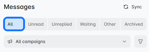Once you connect your LinkedIn profile to the JMI Outreach, this filter shows your non-campaign-based messages. ❗ Messages sent before connecting your account won't appear here.
