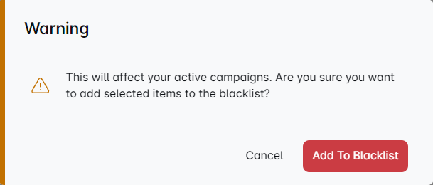 This will pop up if you have active campaigns and JMI Outreach will also blacklist the leads that are in these campaigns. So we are just warning you to make sure that you don't make a mistake.