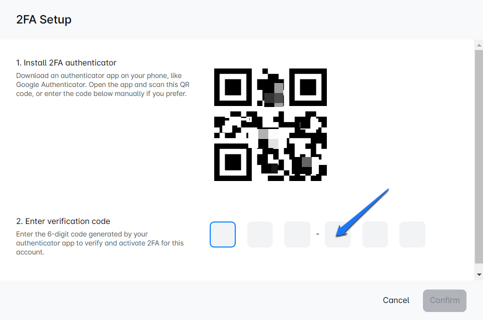 Activate 2FA: Click on "Set Up 2FA". You'll see a new screen with further instructions.